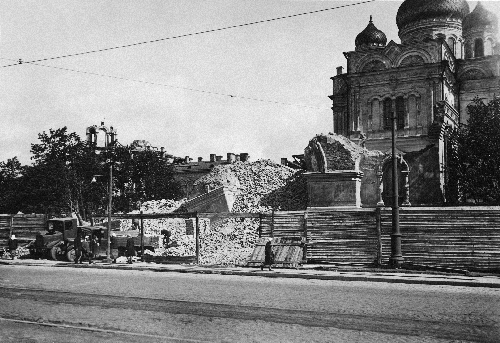 Через несколько месяцев разобрали высокую каменную ограду с башенками и двумя часовнями, снесли церковные купола, шатры, звонницу при еще действующей церкви во имя Афонской иконы Божией Матери и уничтожили внутреннее убранство закрытых храмов.