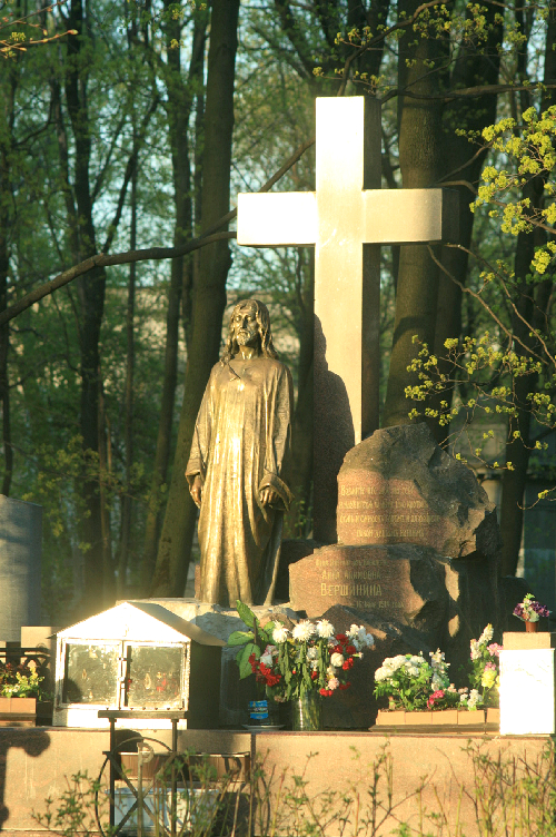 В течение долгих десятилетий, когда храмы монастыря были закрыты, верующие собирались на кладбище и молились у скульптурного образа Спасителя — надгробного памятника жене генерала Анне Акимовне Вершининой. Созданный в 1915 г. скульптуром П. И. Кюфферле памятник представляет собой возвышающуюся у массивного креста из розового гранита бронзовую скульптуру Иисуса Христа. Верующие называли этот памятник храмом под открытым небом. Памятник никогда не состоял под государственной охраной, однако, когда мародеры сбросили с постамента и попытались украсть бронзовую фигуру, ее удалось спасти. Верующие восприняли это как знак Божией милости. Сейчас надгробие содержится в идеальном состоянии.